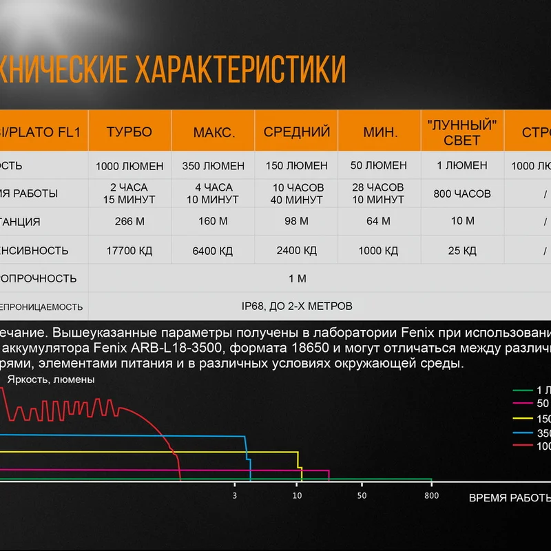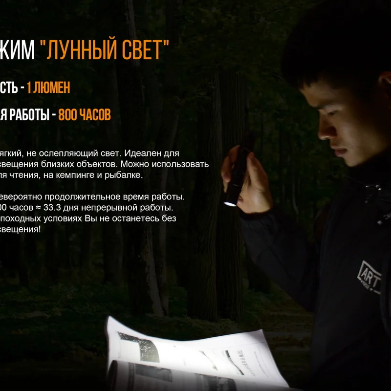 У цьому ліхтарі встановлений світлодіод Cree XP-L HI V3, який здатний працювати з яскравістю до 1 000 люмен, забезпечуючи при цьому створення спрямованого світлового потоку з дальністю до 266 метрів.