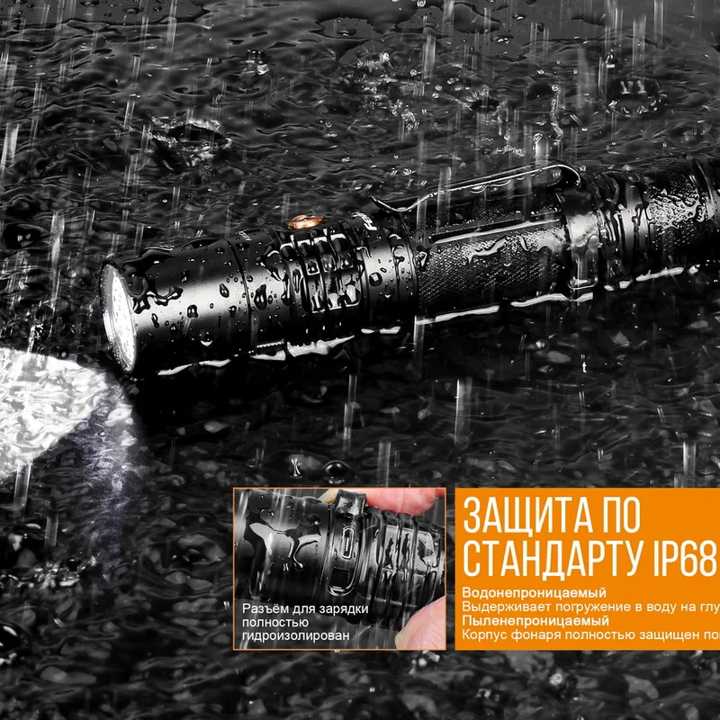 - на поверхню корпуса нанесена спеціальна накатка, що перешкоджає вислизанню ліхтаря з долоні;