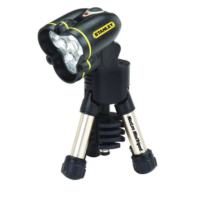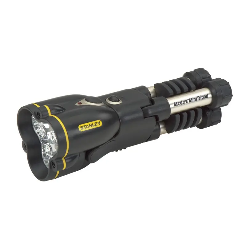 Ліхтар світлодіодний ударостійкий з триногою STANLEY 1-95-111 - Ліхтарик світлодіодний "MaxLife Tripod Midi - 9AA" з триногою- Оригінальна конструкція триноги дозволяє використовувати ліхтар "без рук"- Вологозахисна конструкція- Головна частина ліхтаря фіксується у багатьох положеннях- Індикатор рівня заряду батарей- Ударостійка конструкція з головною частиною виконаної з графітового АБС-пластика- 4-х позиційний перемикач (слабке-середньо-сильне-викл.)- Ліхтар здатний працювати на 3, 6 або 9 батареях типу "АА" (у комплект не входять)