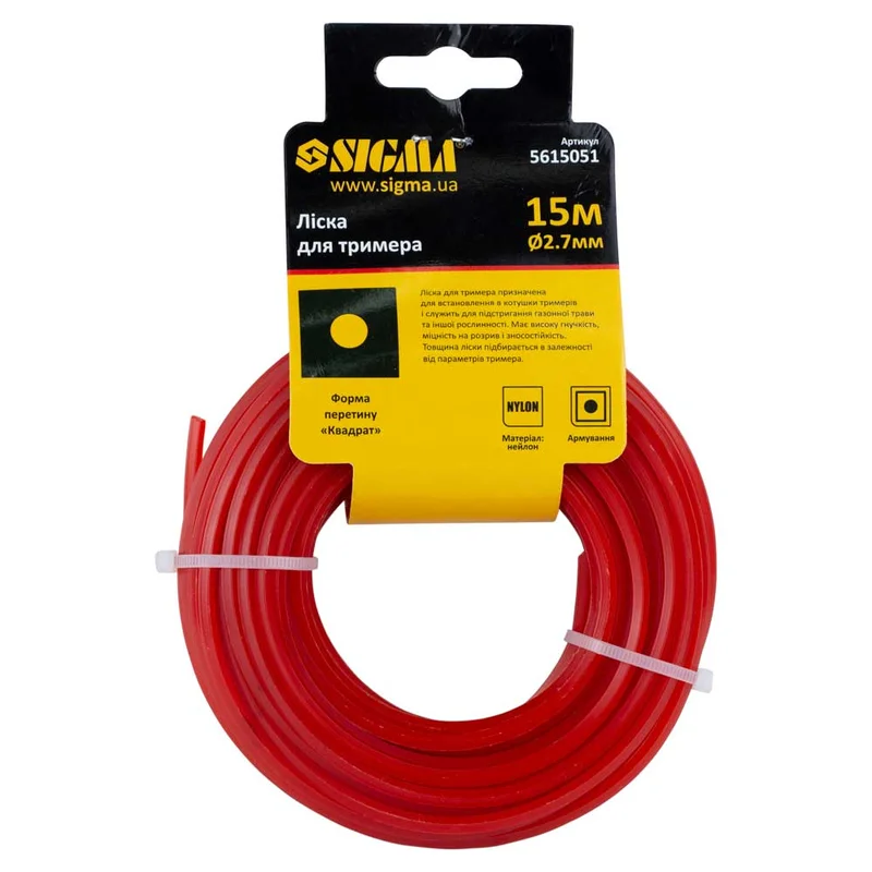 Ліска для тримера армований квадрат Ø2.7мм 15м SIGMA (5615051)