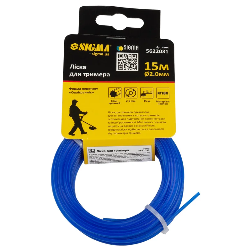 Ліска для тримера "семигранник" Ø2.0мм 15м SIGMA (5622031)