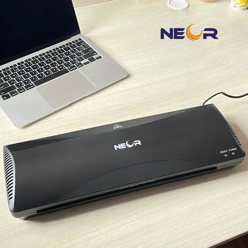 Ламінатор А3 формату, який набуває стану готовності до роботи за 3-5 хв. Підтримує холодне та гаряче ламінування Дизайн Корпус виконаний із термостійкого пластику з попереджуючими помітками на ньому. Надзвичайно простий у використанні. Має тільки одну кнопку для ввімкнення/вимкнення та важіль розжимання валів, якщо у процесі ламінування щось пішло не так. Цей ламінатор відмінно підійде для активного використання в школі, офісі чи вдома. Підтримує гаряче ламінування. Набуває стану готовності до роботи за 3-5 хв. Функціональність Ручна система подачі документу запобігає перекошенню та зменшує можливість згинання паперового носія. Навіть при виникненні форс-мажорної ситуації, ламінатор NEOR 8325, оснащений важелем розтискання валів та функцією холодного ламінування. Ці функції дозволять вийняти матеріал з ламінатору без шкоди для документу та приладу. NEOR 8315 оснащений 4 валами, тобто дві пари, підтримує пакетну технологію та розмір документів до А3 включно. Ламінатор має гарну швидкість ламінування 500 мм/хв та широкий діапазон товщини матеріалів: для плівки – 80 - 125 мкм (забезпечить різну ступінь гнучкості ламінованого документу). Особливості Важіль звільнення валів. Різнокольорові індикатори готовності приладу. Гарячий та холодний методи ламінування. Швидкий старт при гарячому ламінуванні (прогрівається в 2 рази швидше за інші моделі, в середньому час прогріву становить 2-5 хвилин в залежності від навколишньої температури). Автовідключення нагрівальних елементів під час роботи більше 1 години.