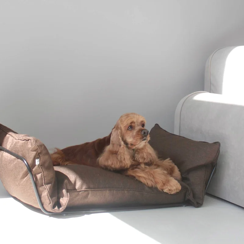 інтер'єрний лежак для собак каркас лежака-легка металева конструкція спальне місце з меблевої тканини всередині лежака легкий, об'ємний та гіпоалергенний наповнювач чохол знімний (3 відділи на блискавці, легко знімати, прати та надягати назад) спальне місце знизу кріпиться липучками на металевий каркас для фіксації для каркаса є спеціальні силіконові ніжки, щоб лежак не їздив по підлозі розміри спального місця 55*47 см (для котиків та собак до 6 кг йорк, чихуахуа, шпиц, той тер'єр, той пудель та інші) Металева конструкція має довжину 80см (включаючи бокові стінки), ширина 41 см