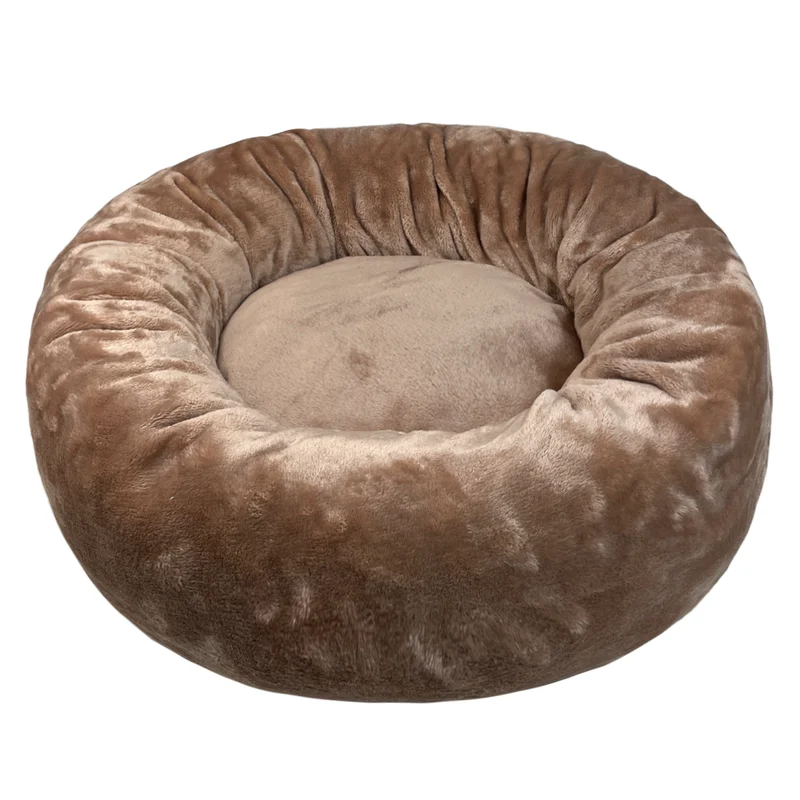 верх лежака виконаний із щільної махрової тканини всередині лежака легкий, об'ємний, гіпоалергенний наповнювач подушка всередині габарити розміру 1: внутрішній діаметр спального місця 30 см, зовнішній діаметр лежака 52 см габарити розміру 2: внутрішній діаметр спального місця 42 см, зовнішній діаметр лежака 62 см чохол незнімний