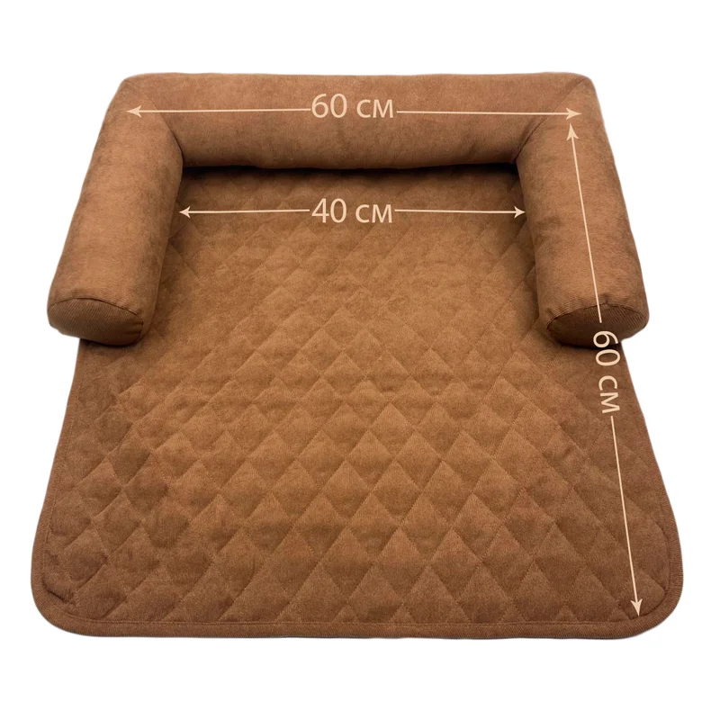 лежак для дивана, крісла, ліжка розмір спального місця 45*60 см тканина стьобаний вельвет зі зворотного боку флізелін наповнювач g-loft бортики зі знімним чохлом, щоб легко відправити лежак у пральну машинку блискавка зі знімної частини схована підійде собакам та котам