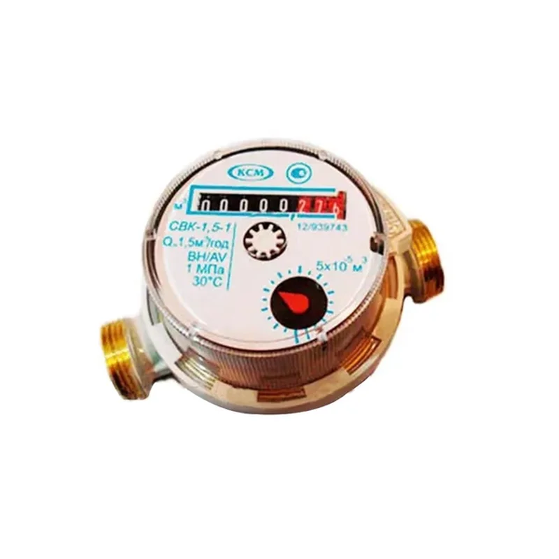 Корпус лічильника СВК-1,5 виготовлений з високоякісної латуні ЛЦ40С, в якому розташовані фільтр грубого очищення і крильчатка рахункового механізму. Передача обертання від крильчатки до рахункового механізму здійснюється за допомогою магнітної муфти, що повністю захищає лічильний механізм від попадання води.