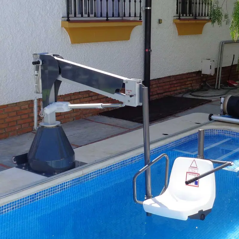 Підйомник для інвалідів METALU 3000 – фіксований підйомник із механічним обертанням, який призначений для звичайних басейнів із переливними жолобами по периметру або скімером, а також для басейнів із бортовим каменем заввишки до 0.45 м. Має вертикальне переміщення, поставляється з кріслом або системою ременів безпеки (за запитом). Якірна плита, виготовлена з нержавіючої сталі 316, зберігає свої розміри незалежно від профілю басейну.