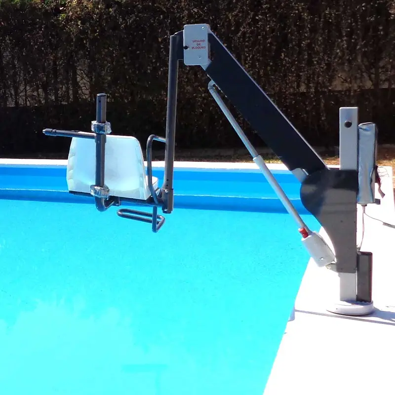Підйомник для інвалідів METALU 3200 Auto – це стаціонарний підйомник з механічним обертанням, призначений для використання у звичайних басейнах або басейнах з невеликими перешкодами, а також у надземних басейнах (фальшбасейнах). Встановлюється на борт басейну. Забезпечує вертикальне та обертальне переміщення і може бути оснащений сидінням або системою ременів безпеки (за запитом). Підйомник виготовлений з нержавіючої сталі Aisi 316 з лаковим покриттям. Оснащений електричним механізмом з акумулятором на 24 В.