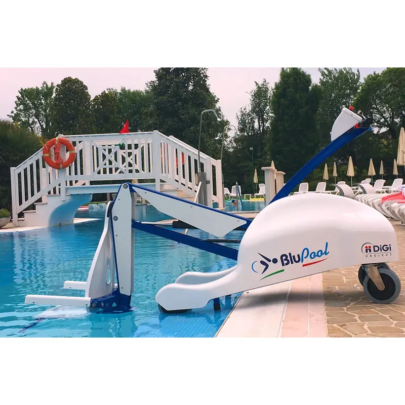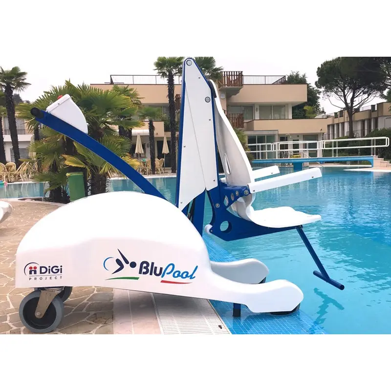 Ліфт-підйомник для інвалідів Blupool дозволяє плавно і безпечно переміщати людей з роздягальні в басейн і назад, а також в інші місця у води. Ліфт простий у використанні. Людина сідає на сидіння спереду і переміщається до краю басейну. На краю басейну досить натиснути кнопку «Вниз», і плавець повільно зануриться у воду. Щоб підняти сидіння, просто натисніть кнопку «Вгору». Операція завершена, як тільки сидіння повернеться у вихідне положення.