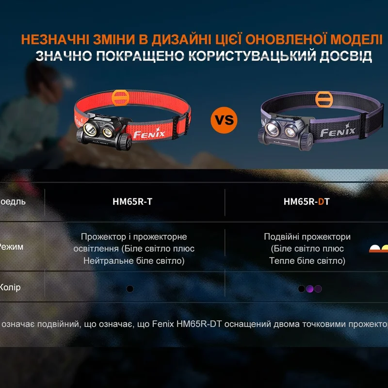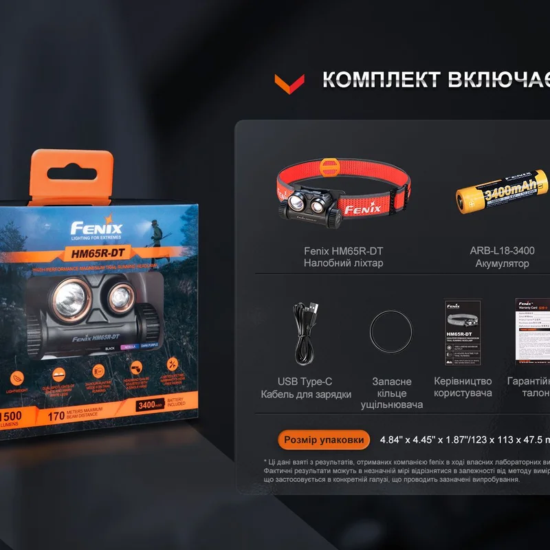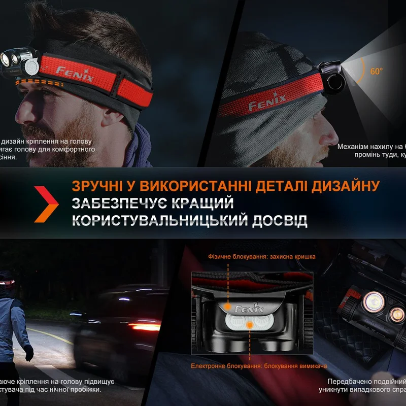 Ліхтар налобний для бігу Fenix HM65R-DT, чорний