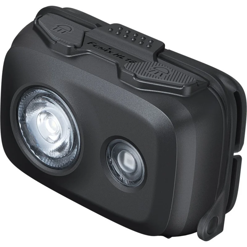 Щоб позбавити користувача довгих натискань перемикача для виставлення необхідного режиму, виробник оснастив Fenix HL16 відразу двома кнопками. Вони виведені у верхню частину корпусу та керують різними групами режимів: права кнопка відповідає за увімкнення/вимикання ліхтаря та перемикання білих режимів, а ліва кнопка –—за увімкнення/вимикання ліхтаря та вибір типу освітлення червоного кольору.