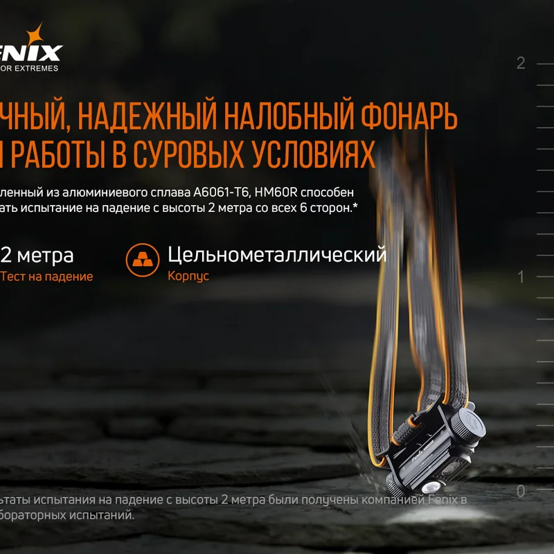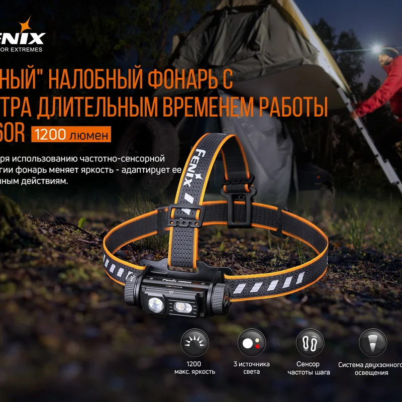 Дальнє світло, ближнє світло і червоне світло об'єднуються. Компанія Fenix піклується про те, щоб випускати якомога більш передові ліхтарі, тому безперервно покращує їх і виробляє вдосконалені моделі. Новою характеристикою в цьому приладі є сенсор частоти кроку: яскравість ліхтаря залежить від швидкості руху людини. Налобна модель Fenix HM60R створена для максимальної зручності користувачів.