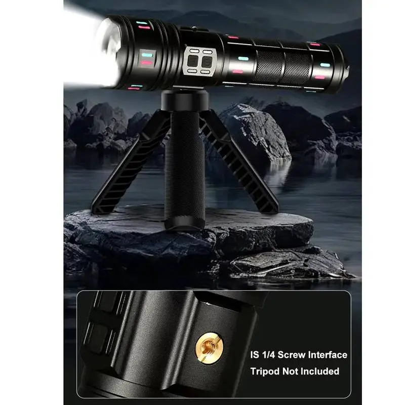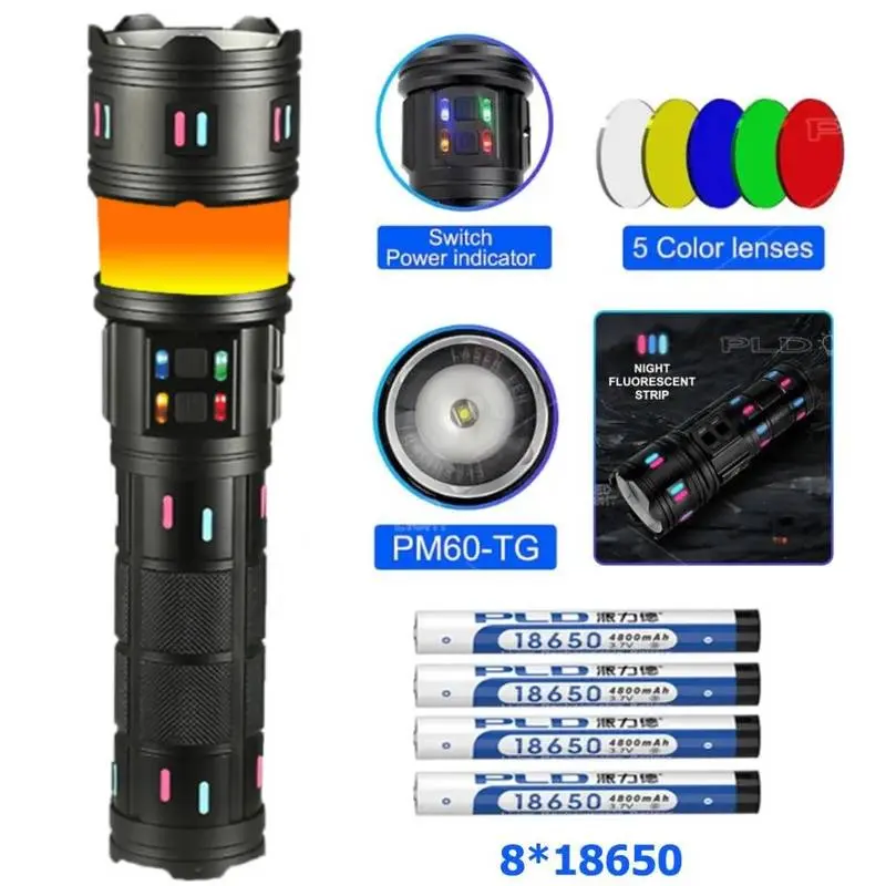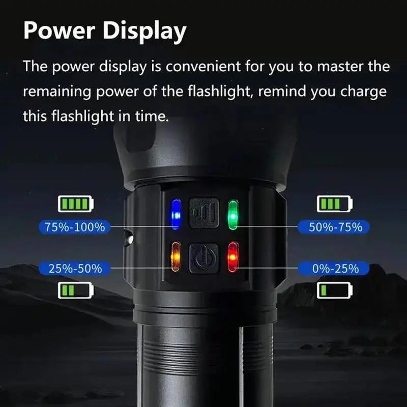 Ручний ліхтар з двома світлодіодами: TG та COB. Має сім режимів роботи, включаючи супер яскравий та утримуючий диммер. Підходить для використання в екстремальних умовах завдяки пило- та вологозахищеному корпусу та флуоресцентному покриттю. Ліхтар оснащений акумуляторами та індикацією заряду, а також має функцію Power Bank.