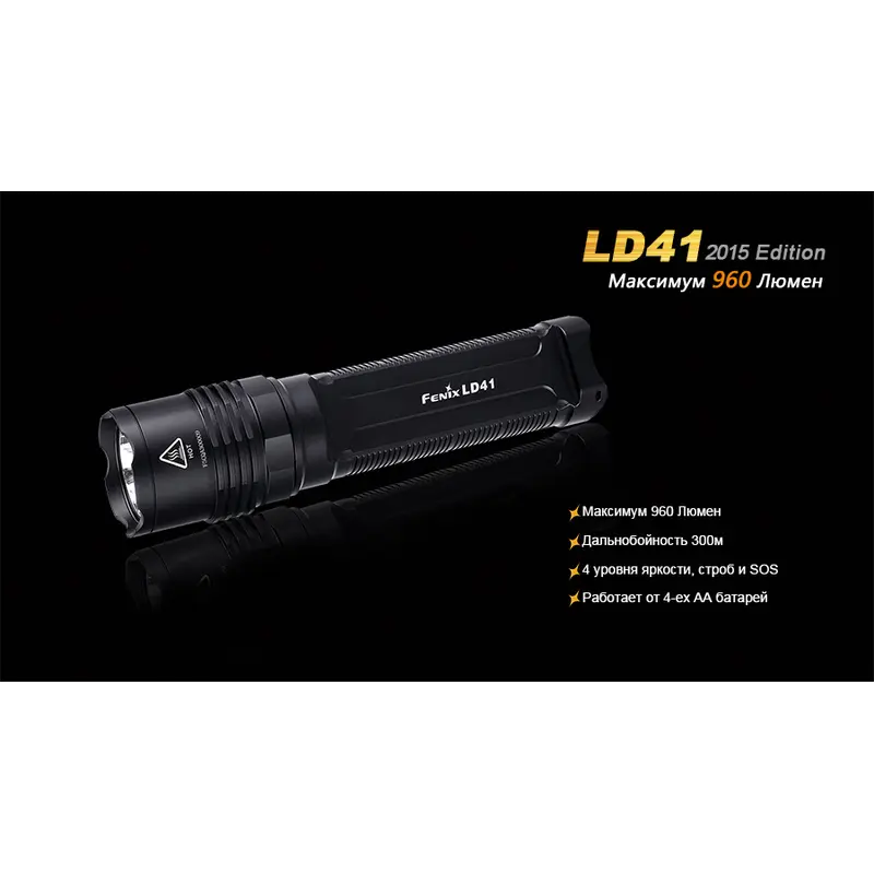 Завдяки широкому діапазону значень яскравості в різних режимах, ліхтар Fenix LD41 можна використовувати в туристичних та пошукових цілях. А живлення від батарей типорозміру АА дозволить без зусиль підібрати заміну сів батареям навіть у найвіддаленішому селі.