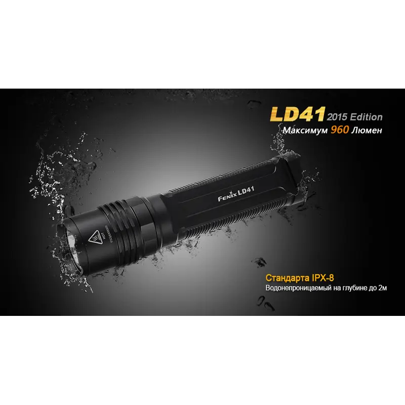 Додатковим захистом і гарантом довговічності ліхтарі Fenix LD41 є корпус з авіаційного алюмінію, на поверхню якого нанесено жорстке анодування. Міцний матеріал корпусу захищає освітлювальний прилад від поломок після падіння на камені з невеликої висоти. Також він не схильний до корозії. Крім того, оболонка Fenix LD41 добре ізольована від проникнення всередину води. Ліхтар навіть можна включати під водою на глибині до 2 м. Такий рівень гідроізоляції відповідає вимогам міжнародного стандарту IPX-8.