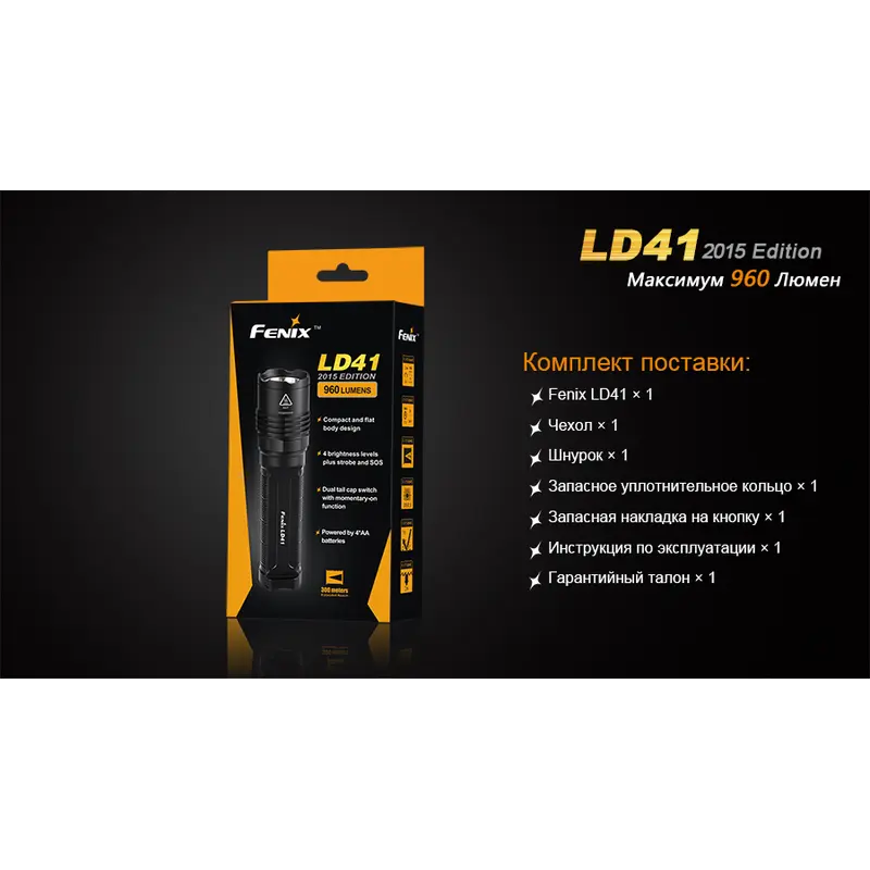 Гарантія: Гарантія на ліхтар моделі Fenix LD41 дійсна протягом 5 років з дати його придбання.