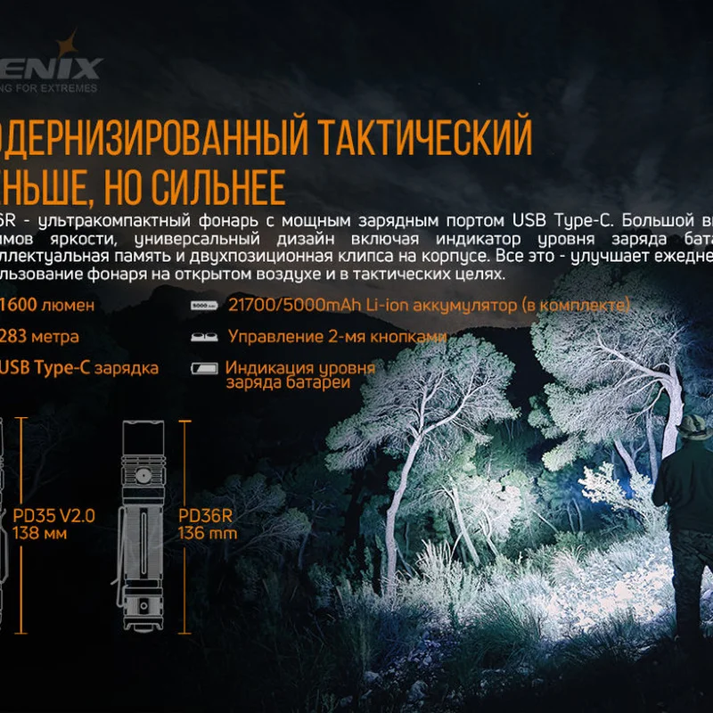 Ліхтар ручний Fenix PD36R+ліхтар ручний Fenix E01 V2.0 у подарунок