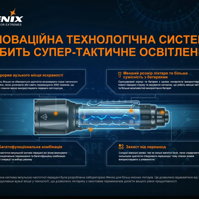 Ліхтар моделі Fenix TK22TAC є військовим приладом. Розроблений з урахуванням потреб тактичного та чергового освітлення, TK22 TAC має тактичні та чергові режими.