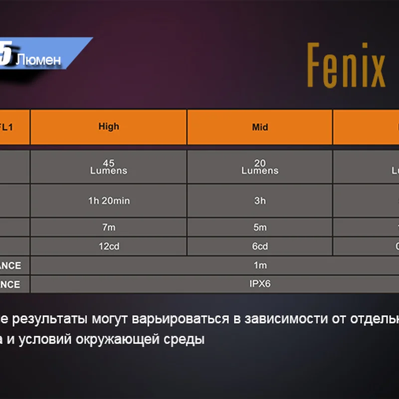 - максимальна яскравість — 45 люмен;