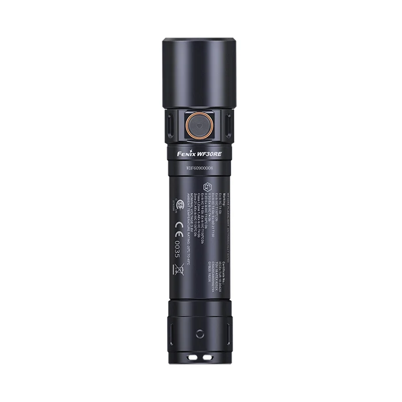 Ліхтар Fenix WF30RE ефективно захищений від впливу води. Він в змозі занурюватися під воду на глибину до пари метрів, і там функціонувати так само добре, як і на суші. Захищений від попадання пилу і вологи за стандартом IP68. Корпус зроблений з використанням міцного матеріалу – алюмінію A6061-T6, який характеризується стійкістю до окислення. Також був оброблений преміальним анодуванням HAIII, стійким до абразивних впливів. Легко переносить падіння з півтораметрової висоти, досить довговічний, і буде служити вам ефективно багато років. Екстремальні значення температур - також не проблема для цього надійного ліхтаря. Він добре пристосований до умов навколишнього середовища: зберігає працездатність при 35-градусному морозі і 45-градусній спеці. Оптимальний варіант для робочих потреб і активного відпочинку.