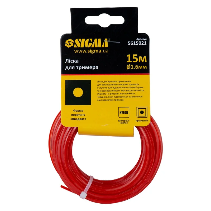 Ліска для тримера армований квадрат Ø1.6мм 15м SIGMA (5615021)