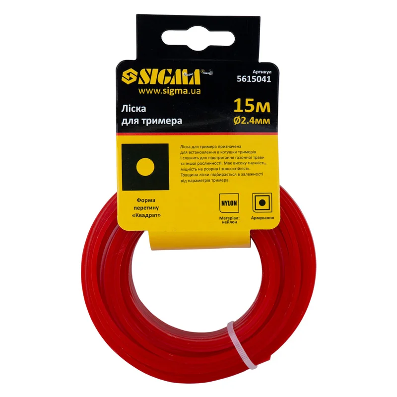 Ліска для тримера армований квадрат Ø2.4мм 15м SIGMA (5615041)