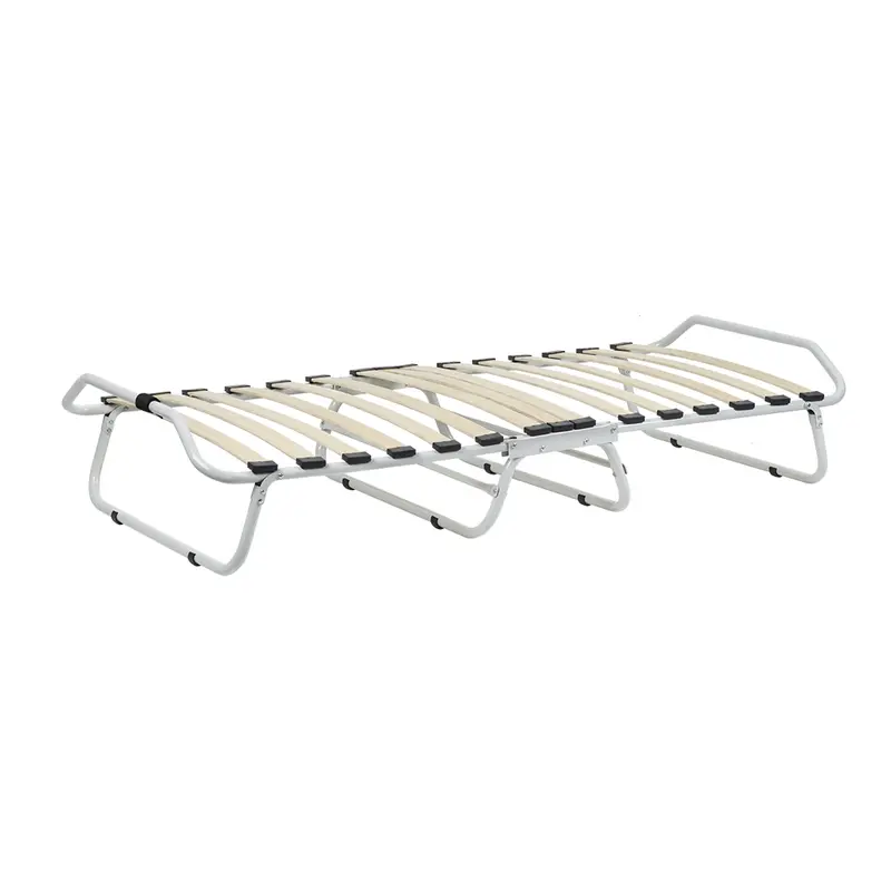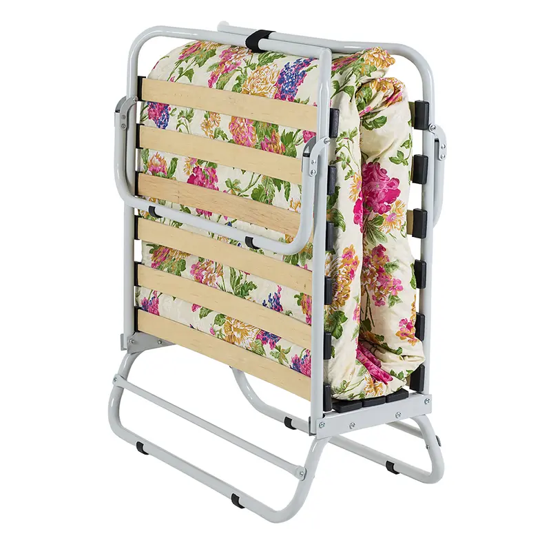 Пропонуємо до вашої уваги абсолютну новинку від ТМ Вітан - «Ліжко на ламелях» d25 мм (Бязь Квіти). Кожна людина стикається з проблемою розміщення гостей, нестачі місця у будинку чи дачі. Фахівці компанії Вітан розробили цю модель з урахуванням усіх особливостей застосування у невеликих приміщеннях. Вона може використовуватися як додаткове спальне місце для гостей, так і як постійне ліжко. У розкладеному вигляді ліжко має повноцінне спальне місце, габаритний розмір ліжка: 370*820*1900 мм (висота, ширина, довжина). А у складеному вигляді ліжко займає мінімум місця (як розкладачка) – 1050*820*420 мм. Спати на ній можна повноцінно та комфортно: спина не прогинається, а також спляча людина розташована вище від підлоги, ніж на розкладачку. Поступово розподілені по всьому периметру ламелі не продавлюють матрац, що важливо при частому її використанні. «Ліжко на ламелях» має ортопедичний ефект, а завдяки міцному каркасу здатне витримувати досить високе навантаження до 120 кг. Матрац виготовлений з якісної зносостійкої тканини «Бязь Голд 125г/м2» приємного забарвлення, наповненого повстю та синтепоном товщиною 50 мм. Каркас відрізняється підвищеною міцністю, виготовлений із металевих труб Ø25мм, з полімерним покриттям. У застосуванні ліжко надійне, компактне і практичне. Невисока вага поєднується із зручністю, а ламелі підтримують ортопедичні функції матраца. Розкладається та збирається таке ліжко легко та швидко завдяки надійному механізму. Ми впевнені, що дана новинка сезону 2018 «Ліжко на ламелях» від ТМ Вітан забезпечить Вам якісний здоровий сон.