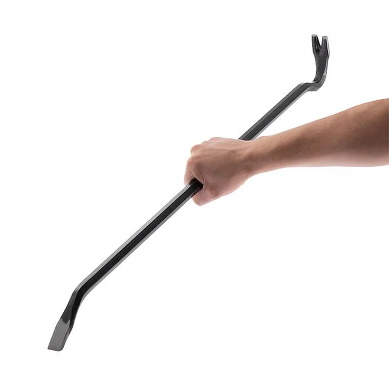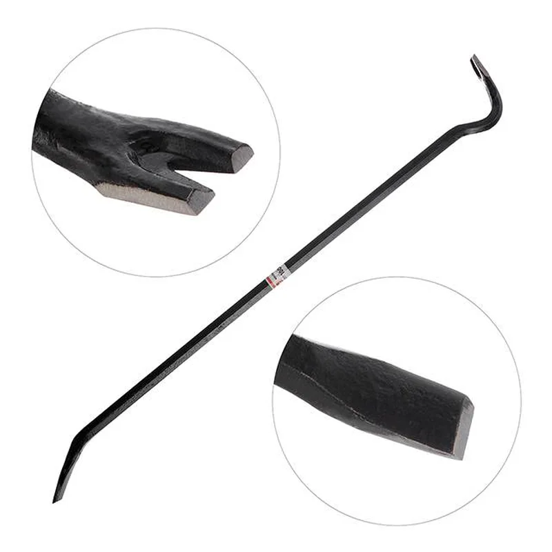 Виготовлений із надміцної загартованої інструментальної сталі для виконання складних демонтажних робіт. Кутовий цвяходер створює опору з високим важелем для зачеплення або підйому, а загострений кінець лома вклинюється у важкодоступні місця. Плоска поверхня цвяходера дозволяє вбивати лом за допомогою молотка.