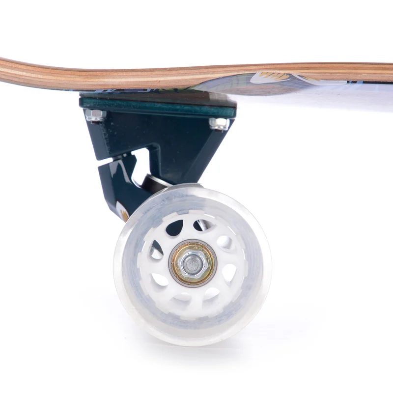 Амортизация подвески достаточно жесткая и идеально подойдет для ровных и быстрых движений. Колеса с мелкозернистой песчаной текстурой имеют жесткость в 78А, чего достаточно для отличного сцепления с дорожным покрытием. Благодаря такому оптимальному показателю, райдера не будет заносить на поворотах не при каких обстоятельствах.