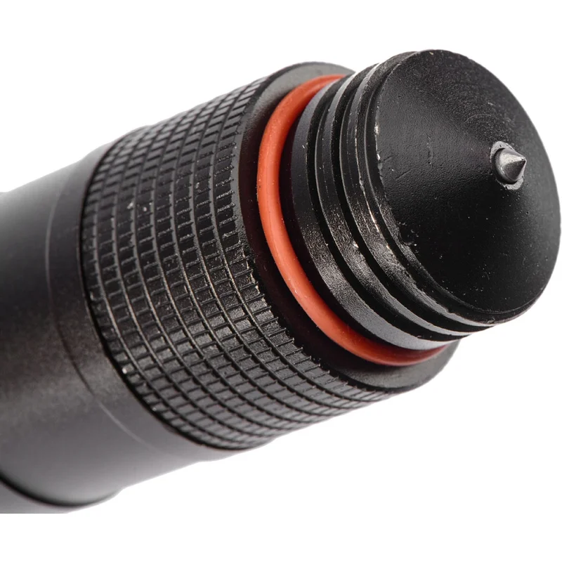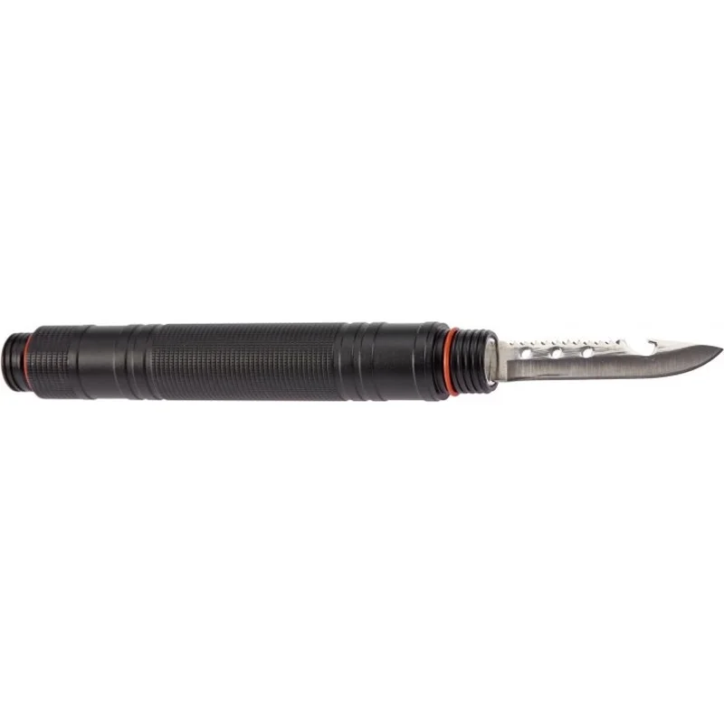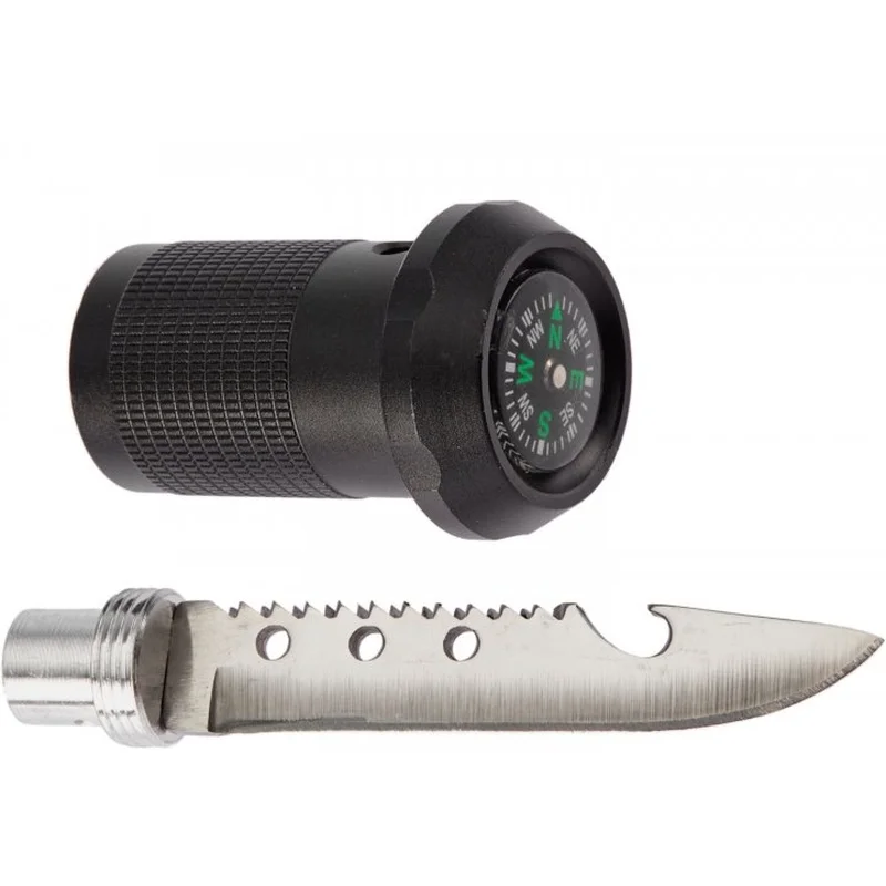 Полотно моделі виконано з якісної сталі, 3х-компонентна рукоятка — з алюмінію. Всі збірні частини щільно кріпляться на різьбу.