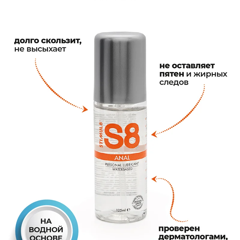 Лубрикант на водной основе для усиления скольжения. Благодаря своим компонентам, очень приятен для кожи и не вызывает раздражения, даже при использовании на протяжении долгого времени. Анальный секс будет максимально комфортным с этой смазкой. Может использоваться с презервативами.