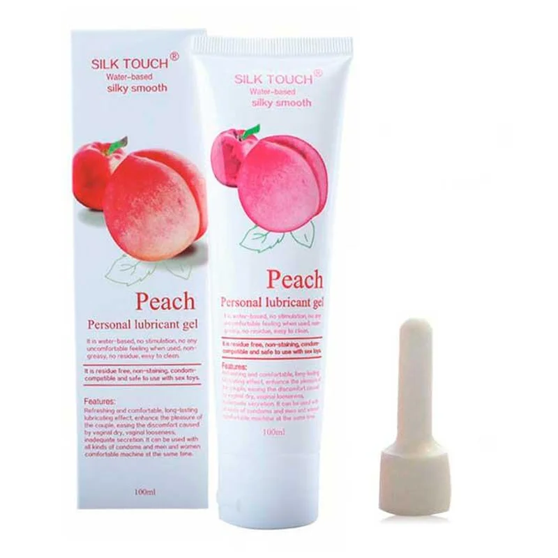 Гель-мастило для вагінального, анального, орального сексу Silk Touch персик, 100 мл. Склад: вода, гідроксіетилцелюлоза, гліцерин, пропіленгліколь, метилакрилат та ін.