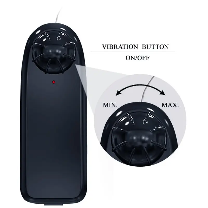 Управління просте та інтуїтивно зрозуміле. За допомогою провідного пульта дистанційного керування можна вибирати швидкість вібрації просто крутячи коліщатко. Шнур пульта одночасно є хвостиком, за який можна витягувати іграшку. Робити це варто обережно, без різких ривків.