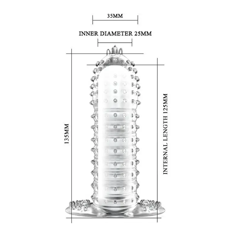 Ярко выраженная головка и рельефная поверхность насадки, увеличит длину на целых 5 см, добавит объем, окажет дополнительную стимуляцию и доставит вашему партнеру еще больше удовольствия.