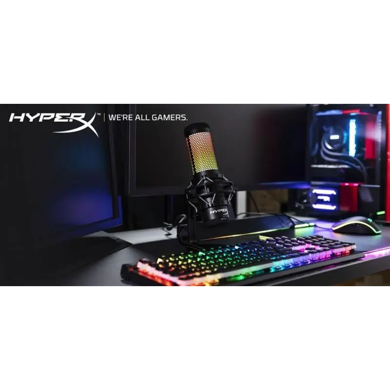 Стояковий мікрофон HyperX QuadCast S призначений як для професійних стримерів, так і для ентузіастів-початківців, яким потрібен якісний звук. Мікрофон обладнаний віброгасильним амортизатором, легко доступними органами керування рівнем, чотирма перемикними діаграмами спрямованості, а також функцією вимкнення торканням, що супроводжується світлодіодним індикатором стану трансляції. Завдяки чистому захопленню голосу без спотворень, QuadCast S підіймає зв’язок стримера зі своєю аудиторією на небачену раніше висоту, а настроювані динамічні ефекти повноколірної RGB-підсвітки додадуть стильного й незабутнього зовнішнього вигляду робочого місця стримера. У комплекті з мікрофоном постачається перехідник до більшості популярних мікрофонних стійок, він обладнаний вбудованим попфільтром, а контролювати звук із нього можна через аналоговий вихід на навушники. Мікрофон пройшов сертифікацію Discord і TeamSpeak, сумісний із ПК, PlayStation 4 і Mac.