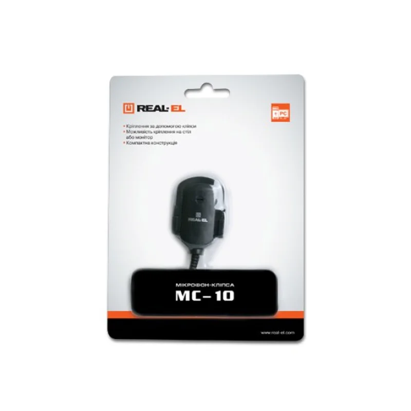 Мікрофон-кліпса REAL-EL MC-10 призначений для спілкування через Інтернет, запису слів i фраз під час вивчення іноземних мов. Мікрофон має кліпсу для кріплення на одязі, а також знімне кріплення, призначене для фіксації моделі на столі або на корпусі монітора. Принцип дії конденсаторний Матеріал пластик