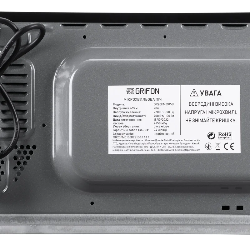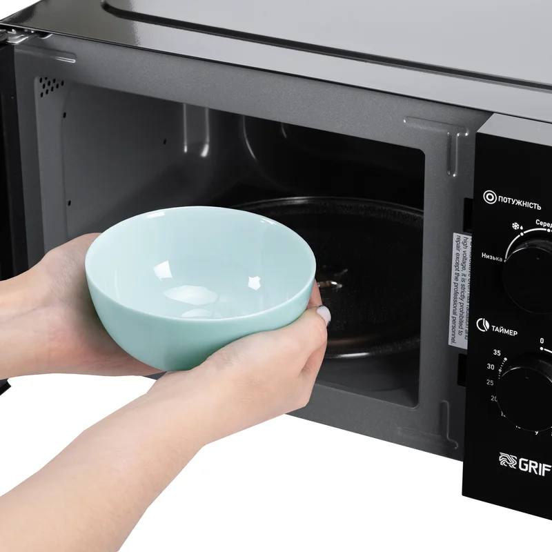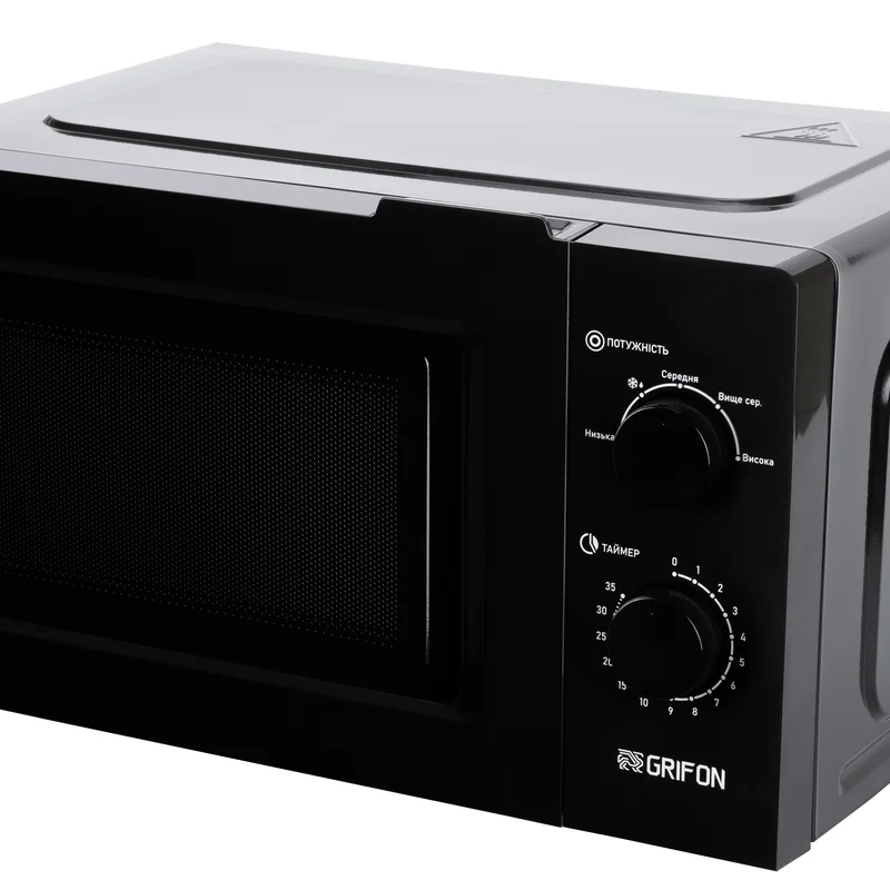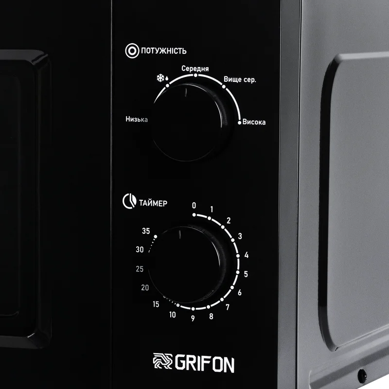 GRIFON – український бренд побутової техніки високої якості, який завжди піклується про комфорт вашого життя. У виробництві ми ретельно контролюємо якість матеріалів для нашої продукції, щоб піклуватися про ваше здоров'я. Техніка GRIFON виготовляється на заводах з багаторічною історією. Весь процес виробництва суворо контролюється, а якість продукції бренду підтверджено сертифікатами Європи та України. ВИРОБНИЦТВО Виробництво ми обираємо за такими критеріями: - висока культура виробництва - використання передових технологій; - лідируючі позиції серед заводів-виробників; - контроль якості на кожному етапі від сировини до готової продукції; - надійність та лояльність до партнерів; - гарантійний супровід. Мікрохвильова піч Grifon GR20FM0105B – це простий та корисний на кухні пристрій. Вона допомагає розігрівати заздалегідь приготовлену їжу чи готувати прості страви. Проста в управлінні У мікрохвильовій печі Grifon GR20FM0105B механічний тип керування. Вам потрібно всього лише повернути дві ручки, щоб налаштувати її роботу. Встановіть таймер на будь-який час до 35 хвилин. Потужність має 5 рівнів. Один з яких – розморожування. Розігріває та розморожує У мікрохвильовій печі Grifon GR20FM0105B можна розігрівати будь-які продукти, причому не тільки ті, які ви приготували самостійно. Ви можете купити в супермаркеті піцу або готовий обід та приготувати його всередині печі. Крім того, пристрій може швидко розморожувати м'ясо, рибу, овочі. Вам у цьому процесі брати участь не доведеться. Достатньо покласти продукти всередину печі, закрити дверцята, встановити тумблер на значок сніжинки та встановити час. Доречна у будь-якому інтер'єрі Мікрохвильова піч Grifon GR20FM0105B має компактні розміри 491*363*286. Вона виконана у чорному кольорі, тому універсальна. Їй знайдеться місце на кухні будь-якого стилю. Її можна вбудувати в меблі, поставити на стіл або повісити на стіну.