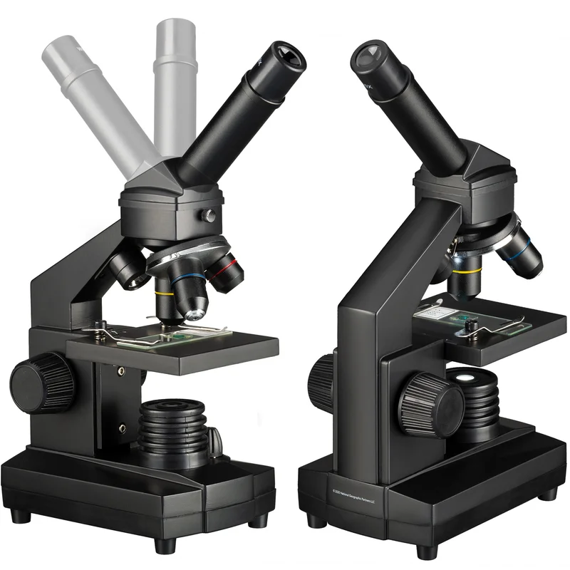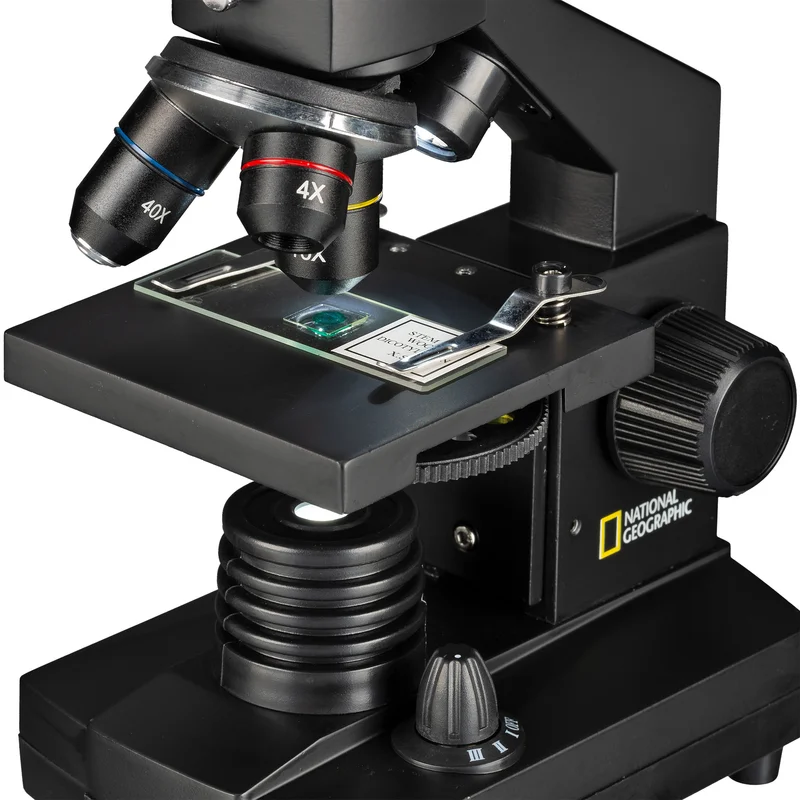 Мікроскоп National Geographic 40x-1024x USB Camera з кейсом (9039100) - це цифрова, добре укомплектована модель мікроскопа з HD USB PC-мікроокуляром який забезпечує в реальному часі комфортне спостереження зразків безпосередньо з екрану монітора і дозволяє задокументувати свої спостереження і поділитися ними з друзями. З HD-камерою спостерігач може створювати і редагувати фотографії з роздільною здатністю 1280х720 в форматі JPEG та записувати відео в форматі AVI. Дана модель поставляється з широким набором аксесуарів, об'єктивів і окулярів, необхідних для спостережень, що дає можливість відразу зануритися в цікавий і захоплюючий мікросвіт. Зручний та легкий пластиковий кейс призначений для зберігання та транспортування мікроскопа, аксесуарів та приладдя. Водночас прилад оснащено якісною скляною мультипросвітленою оптикою, що робить його цікавим не лише підліткам, а й дорослим. Комбінація двох ширококутних окулярів та трьох об'єктивів дає можливість отримати збільшення 640х. Вдалим рішенням є використання в мікроскопі лінзи Барлоу для отримання безступінчастого (плавного) масштабування зображення, завдяки чому досягається максимальне збільшення 1024х. Монокулярна насадка, нахилена під кутом 45°, повертається на 360°, дозволяючи спостерігати у будь-якому зручному положенні, і навіть працювати з мікроскопом групі дітей чи дорослих без переміщення мікроскопа у просторі. Мікроскоп забезпечений комбінованим підсвічуванням - двома світлодіодними лампами, розміщеними над і під предметним столиком. Світло, що проходить скрізь зразок, використовується для спостереження прозорих об'єктів, світло що відбивається - для непрозорих тривимірних зразків. Використання двох ламп одночасно може бути корисним при спостереженні напівпрозорих зразків. Яскравість освітлення, передача кольору і спрямованість пучка світла контролюється діафрагмою з різними діаметрами отворів і п'ятьма світлофільтрами. Перелік аксесуарів включає готові слайди, до огляду яких можна розпочати негайно. Також у наборі є аксесуари для препарування зразків, мікротом для самостійного приготування зразків, інкубаторій та готові препарати. Живлення мікроскопа здійснюється від трьох найпоширеніших батарей АА (LR6, до комплекту не входять). Таким чином мікроскоп незалежний від мережі змінного струму і може бути використаний навіть в польових умовах.