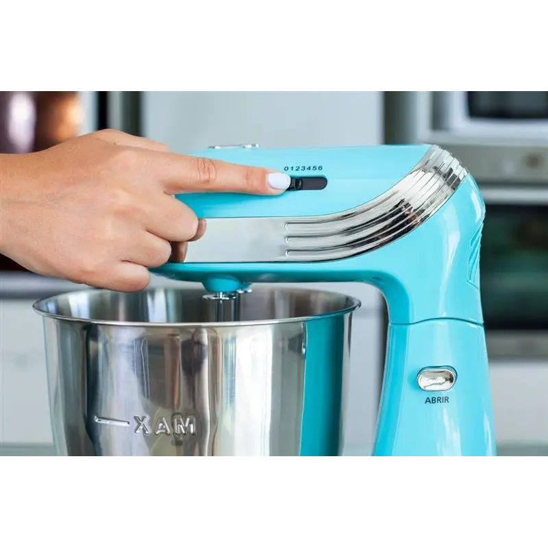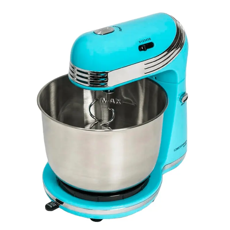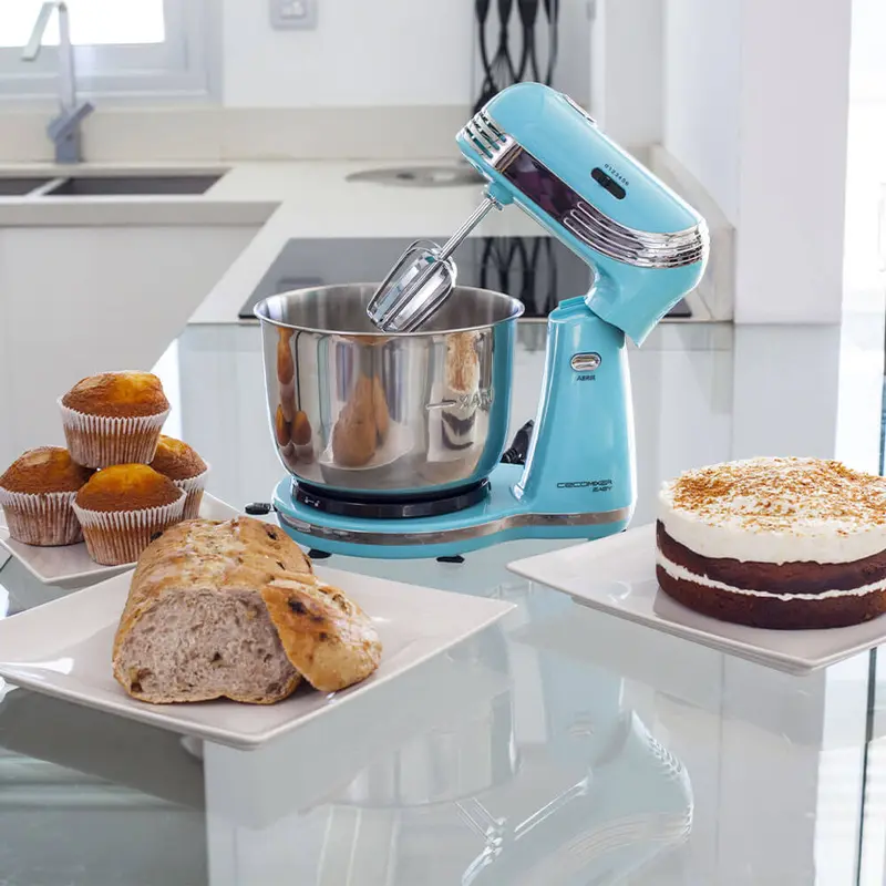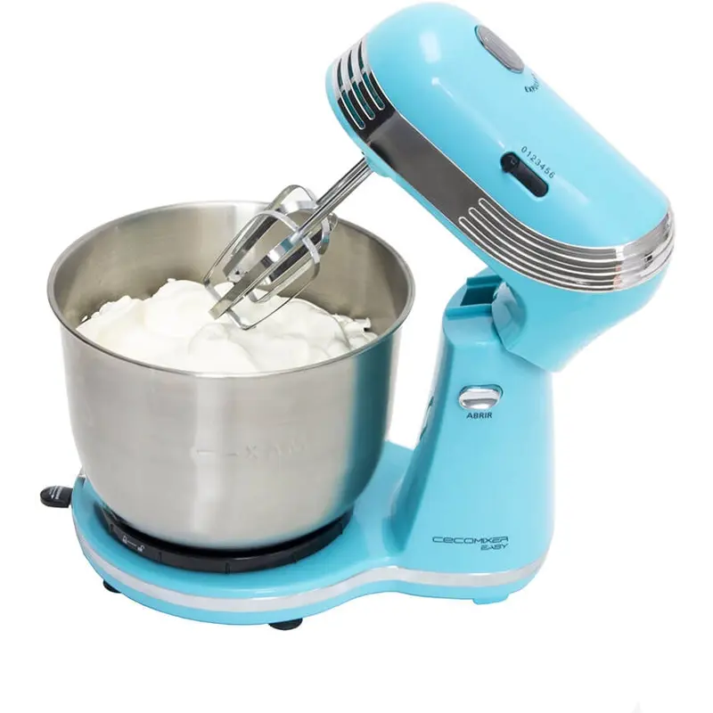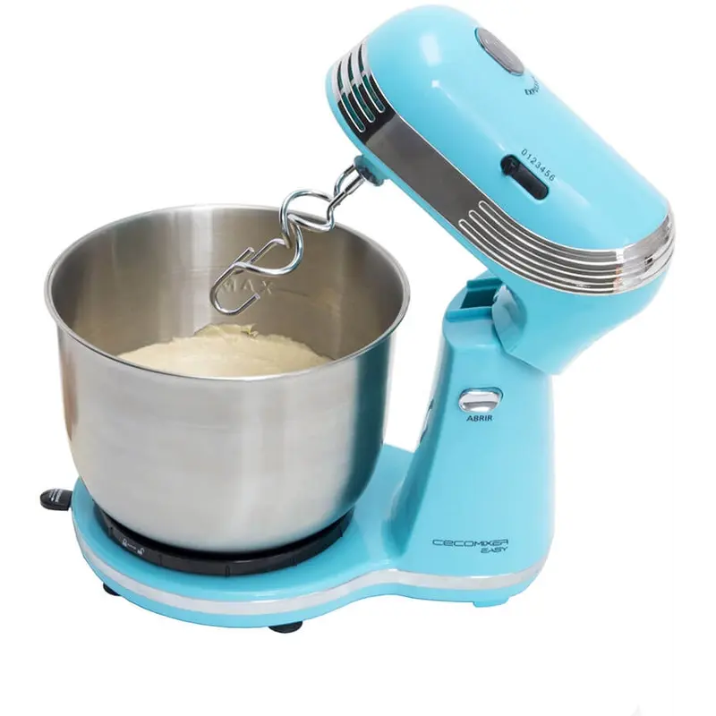Міксер із 6 рівнями потужності Любите готувати торти, пироги чи домашній хліб? Для досягнення ідеальної текстури тіста та крему вам ідеально підійде стаціонарний міксер Cecomixer Easy. Готуйте повітряні кекси, безглютеновий хліб чи сметанний крем за допомогою 6 рівнів потужності. Різноманітність та сучасний дизайн Cecomixer Easy White вміє замішувати тісто, збивати або емульгувати крем, змішувати інгредієнти. Потужність 250 Вт дозволяє обробляти будь-які продукти. Міксер стане ідеальним доповненням до інтер'єру будь-якої кухні. Бірюзовий корпус та хромовані деталі виділятимуться серед стандартної техніки чорного кольору. Планетарний рух Планетарні міксери ідеально підходять для приготування десертів. Вони рухаються швидше та з великим діаметром. Ви можете вибрати положення чаші: залишити її нерухомою або запустити орбітальне обертання. Такий спосіб збивання дозволяє досягти рівномірної консистенції як професійних кондитерських виробах. Захищені кріплення CECOTEC піклується про вашу безпеку та якість матеріалів для техніки. Насадки оснащені спеціальними захисними дисками, щоб уникнути попадання тіста або крему в механічну частину міксера. Чаша ємністю 3,0 л виготовлена з нержавіючої сталі. Повітряний крем З міксером Cecomixer Easy ви можете приготувати неймовірний крем із збитих вершків. Таким чином ваші десерти стануть кориснішими і смачнішими, ніж з покупним кремом. Замішує тісто Вам більше не знадобиться окремий тістоміс або хлібопічка. Використовуйте Cecomixer Easy для замішування тіста для булочок, хліба або пирога. Випікання такої якості можна приготувати лише з цим девайсом. Потужний двигун Міксер оснащений унікальним двигуном із системою захисту від перегріву. Як тільки пристрій досягає максимальної температури, він вимикається і не приступає до роботи, доки не охолоне. Це не вплине на якість та швидкість вашої роботи, прилад швидко та якісно справляється з приготуванням крему або замішуванням тіста.