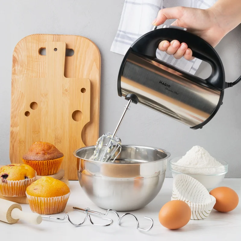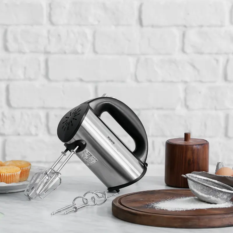 Міксер Magio MG-235 - відмінна якість матеріалів, зручність використання. Насадки для збивання яєць та тіста. Кнопка викиду насадок.