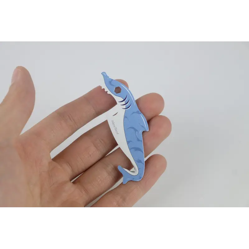 Любителям мінімалізму присвячується. Витончений мультитул, виготовлений з нержавіючої сталі марки 2Cr13, з відмінними ріжучими властивостями. Може вікорістовуватіся в якості ножика, відкривачки для пляшок, замість ножиць. Вам потрібно розкрити коробку, або перерізати мотузку, або відкоркувати тару, а бути може, підпиляти що-небудь – модель KT5521 до послуг користувача. Надійний, безпечний і продуманий мульті інструмент. Цікавий анімалістичний дизайн – форма у вигляді силуету підводного хижака, агресивною, але чарівною, акули. Запросто прикрасити ваші ключі, сумку, чохол для техніки або будь-який інший предмет. Підходить для щоденного застосування.