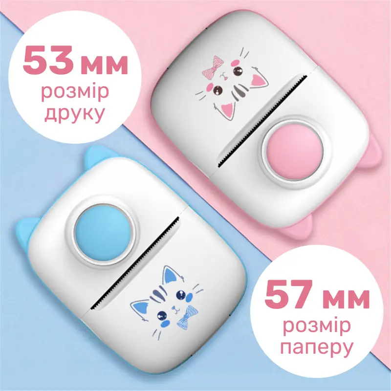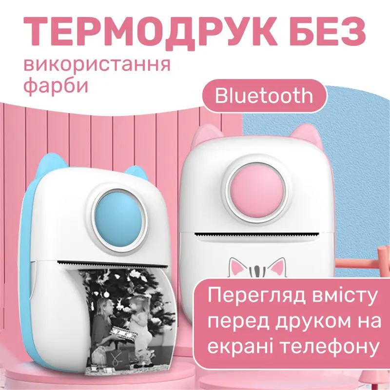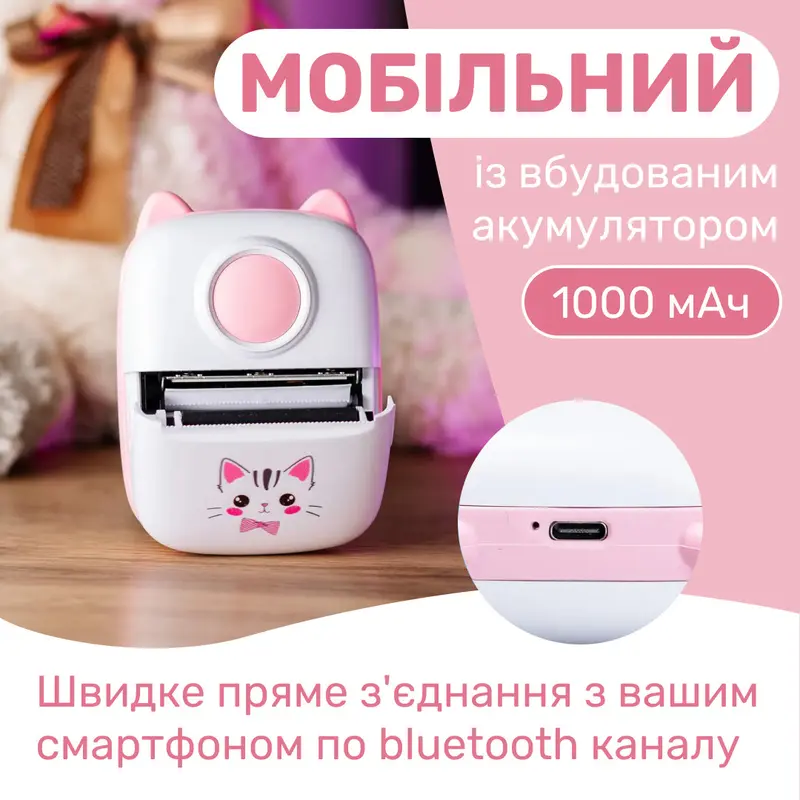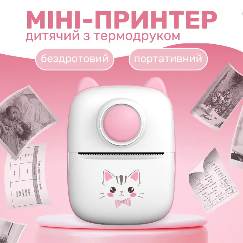 Міні принтер дитячий портативний з термодруком Рожевий