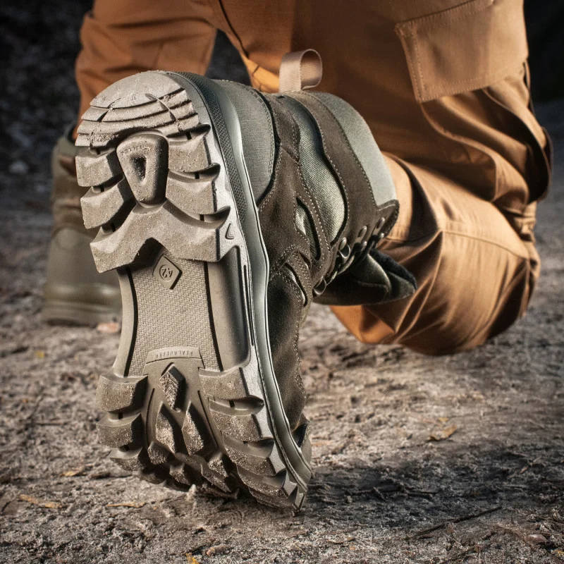 Метод кріплення підошви - вакуумно-термічний. Це означає, що вона не прошивається в місці кріплення до взуття, забезпечуючи тим самим додатковий захист від потрапляння вологи всередину. Верхній шар підошви - поліуретан, має властивості, що амортизують, полегшує ударні навантаження також надає підошві комфорт, легкість і підвищену термоізоляцію. Нижній шар підошви з гуми: має високий коефіцієнт зчеплення, а також стійкий до стирання, що істотно підвищить термін експлуатації.