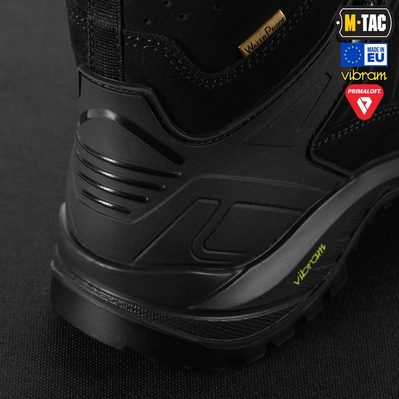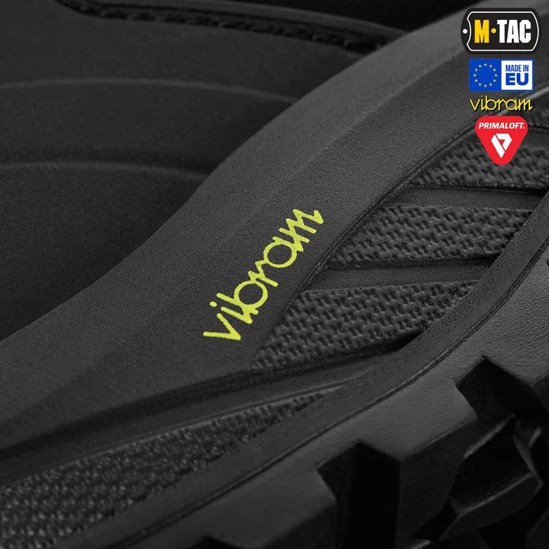 M-Tac черевики Tactical winter boots утеплені високоякісним наповнювачем Primaloft. Даний матеріал забезпечує відмінну теплоізоляцію та надійно захищає від холоду. Завдяки своїм унікальним властивостям утеплювач Primaloft легко випаровує вологу при намоканні та швидко сохне. Також він досить легкий, добре пропускає повітря, органічно поєднуючи в собі мякість пуху і міцність синтетичного волокна.
