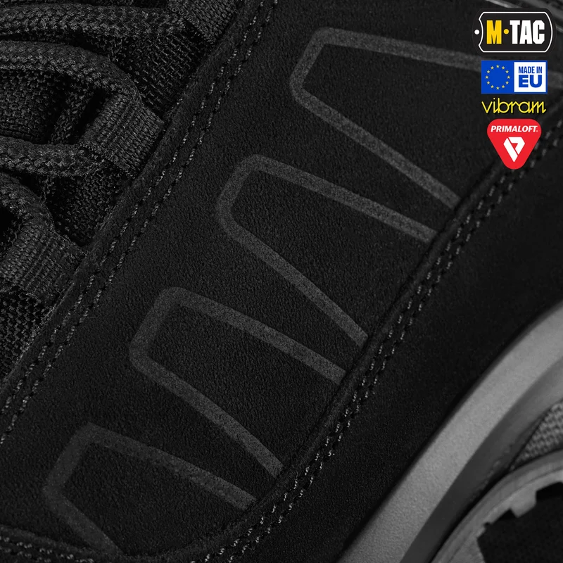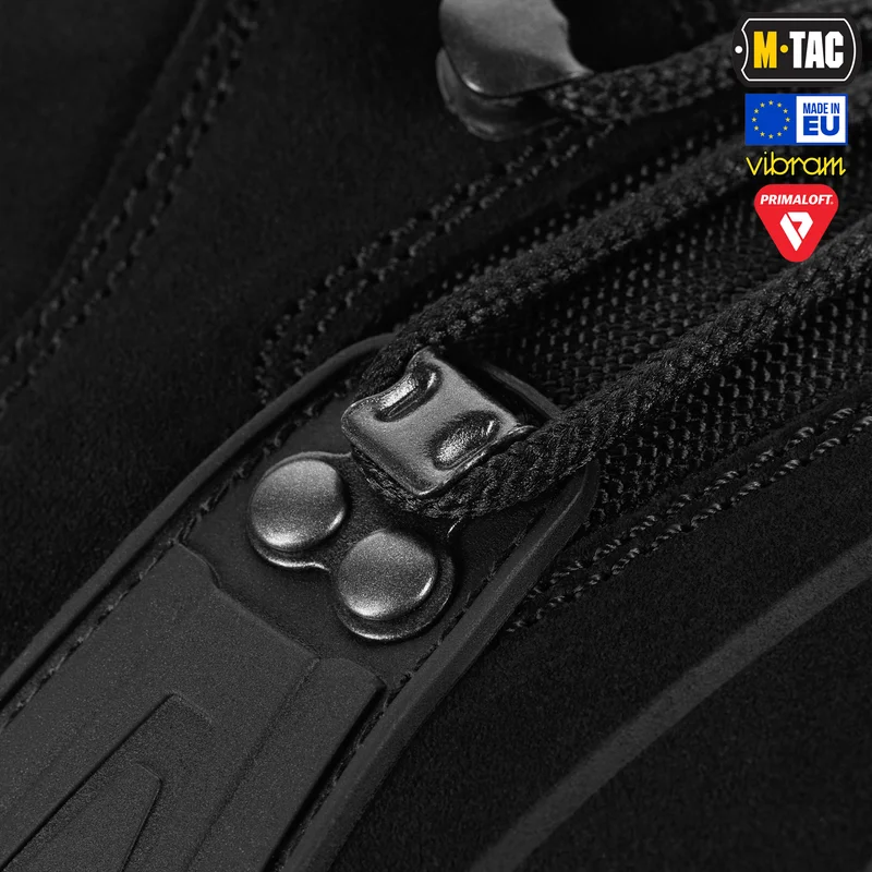 M-Tac черевики Tactical winter boots виготовлені з щільної замші, яка забезпечує захист від механічних пошкоджень та тривалий термін експлуатації. Також, даний матеріал наділяє черевики вологостійкими (дихаючими) та зносостійкими властивостями, які є вкрай необхідними під час тренінгу, руху по бездоріжжю та значних фізичних навантажень.