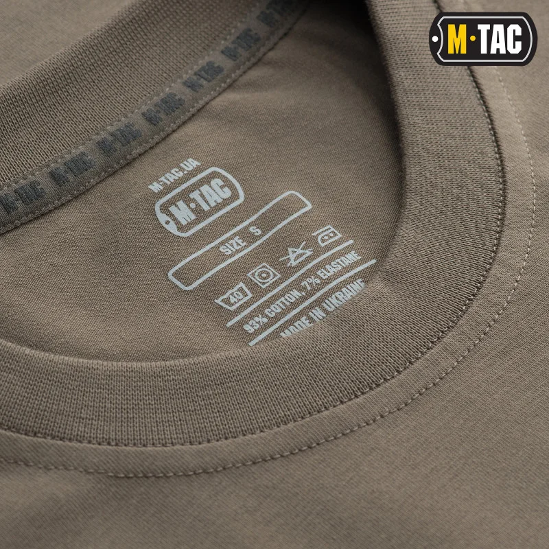 M-Tac футболка виготовлена ​​на 93% з бавовни, а решта 7% це "еластан". Завдяки цьому футболка витримує не один десяток прання і не втрачає при цьому форми. Футболка - це обовязкова частина гардероба будь-якого чоловіка. Область споживання і застосування наших футболок величезна - від повсякденного носіння до використання як уніформи для військових підрозділів і силових структур. Футболки максимально підходять для використання при активному способі життя - полюванні, риболовлі, занятті спортом, туризму. Тонкий еластичний і якісний трикотаж вдало підкреслює рельєф мускулатури, дає повне відчуття комфорту.