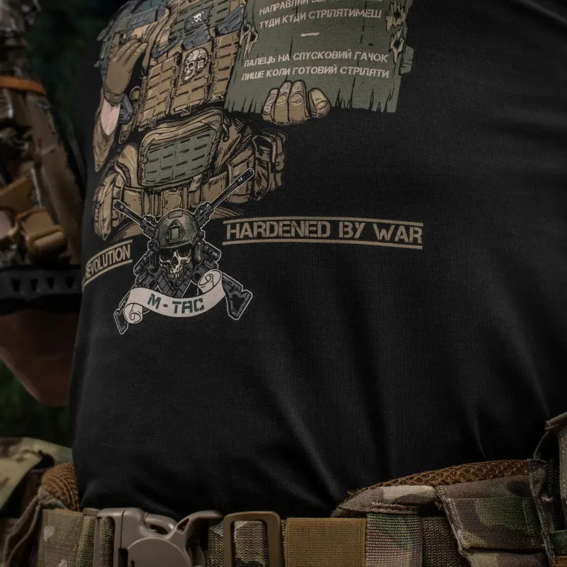 Сьогодні багато майбутніх захисників України проходять вишколи на полігонах та навчання з використання вогнепальної зброї. Кожен з них має усвідомлювати, що у поводженні зі зброєю є червоні лінії, які не можна перетинати. Саме ця важлива тема, спонукала дизайнерів бренду М-Тас на створення нової футболки, присвяченої стрільцям та їх основним, непорушним заповідям.