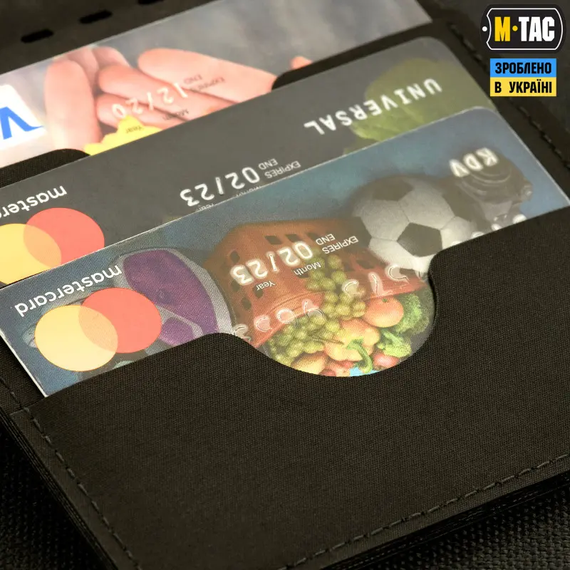 Компактний і стильний гаманець Slim Elite призначений для зберігання готівки, карток і візиток. Розроблений дизайнерами бренду M-Tac з урахуванням усіх прогресивних тенденцій та з використанням новітніх виробничих технологій. Пошитий із сучасного полімерного композиту, який володіє особливою стійкістю до стирання, міцністю та довговічністю. Гаманець має одне відділення для купюр, 6 відсіків для пластикових карток і брендовану заклепку з латуні. Цей компактний аксесуар припаде до душі всім шанувальникам зручності та практичності, а також легко поміститься в вашу кишеню.