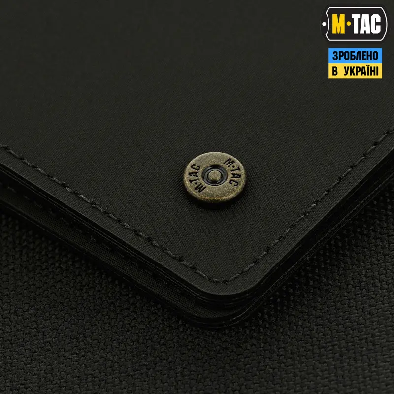 Спереду гаманця – брендована заклепка з латуні. З вигравіруваним на ній логотипом M-TAC.