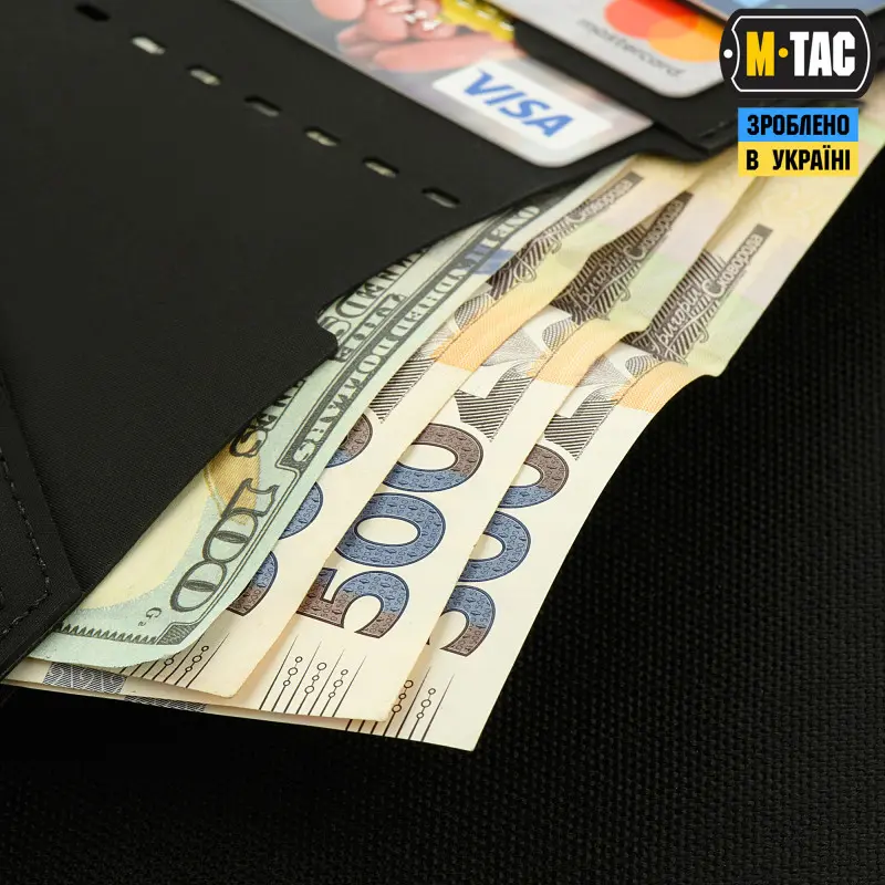 Компактний гаманець Slim Elite Gen.II призначений для зберігання готівки, карток і візиток. Розроблений дизайнерами бренду M-Tac з урахуванням всіх прогресивних тенденцій і з використанням передових виробничих технологій. Пошитий із сучасного полімерного композиту, який володіє особливою стійкістю до стирання, міцністю та довговічністю. Гаманець має одне відділення для купюр, 3 відсіки для пластикових карток і брендовану заклепку з латуні. Також у цій генерації розробники додали відділення для копійок. Цей компактний аксесуар припаде до душі всім шанувальникам зручності і практичності, а також легко поміститься в кишеню або ж не займе багато місця у вашій сумці.
